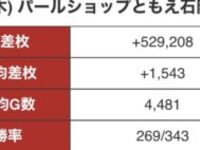 【店内全6相当】茨城にあるパールショップともえ石岡店さん、15時オープンで総差枚53万枚(1台平均1500枚超)の伝説を残してしまうwwwww