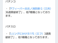 「PF炎炎ノ消防隊(36週)」「Lリングにかけろ1(3週)」が稼働貢献終了