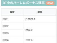 ハーレムエースのBT中確率ループさせる気ゼロで笑える、1で1/10922.7て
